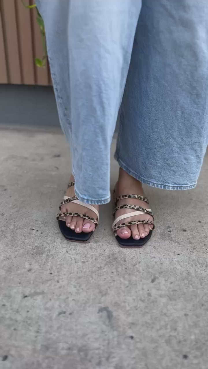 💛 Capellada prefabricada con tiras entrelazadas, que fusionan tonos neutros con un sutil toque de animal print.